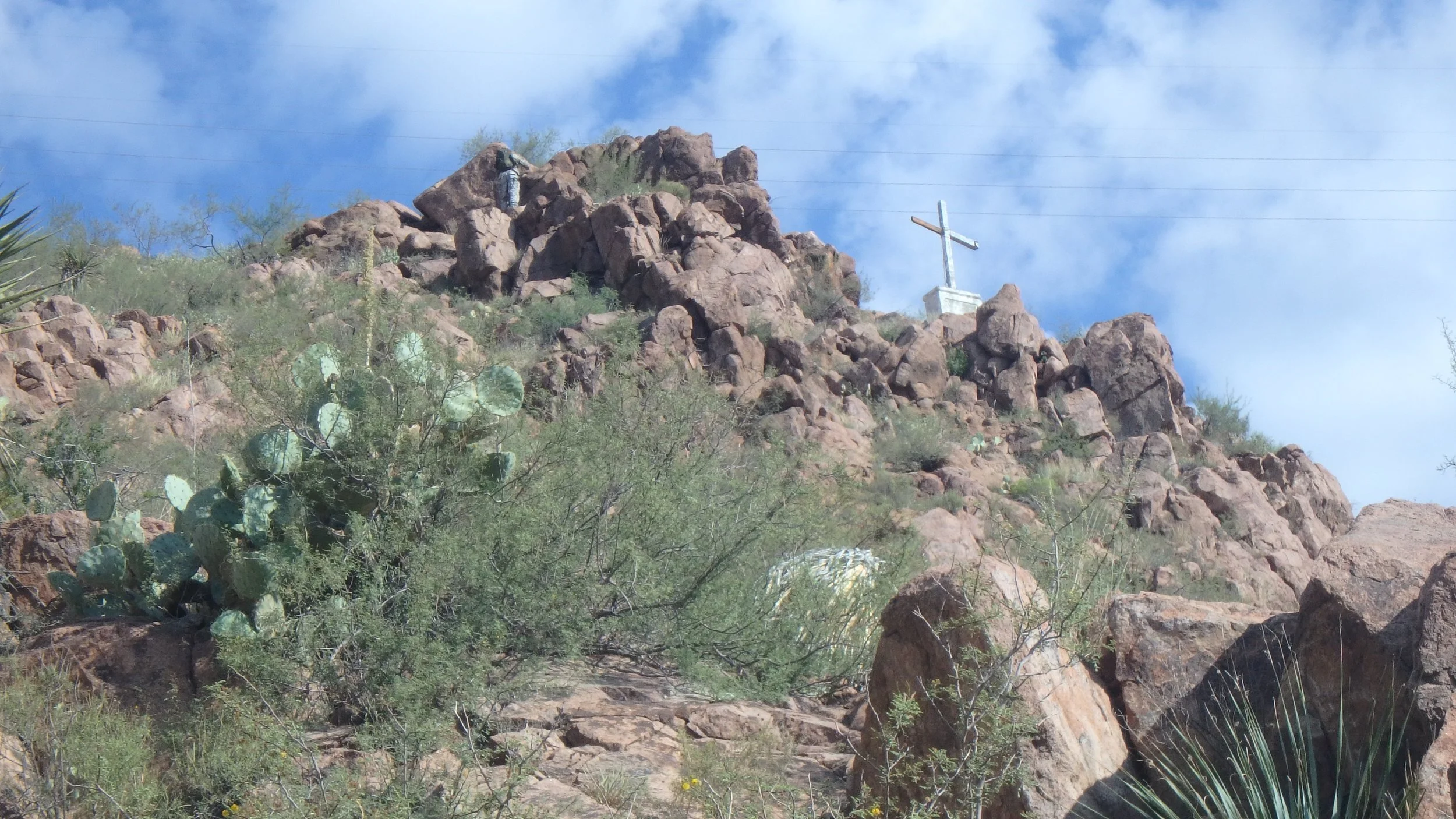 You will visit the site of a B24 Liberator that crashed on March 23, 1944 The red rhyolite that you will see is a remnant of the super-continent, Rodinia, that formed about one billion years ago. At that time our part of the North American continent was connected to what is today Western Australia. Hiking to the canyon will be up an arroyo and then up the side of the hill to the memorial. Some history will be discussed of the site, and the events that have occurred there.