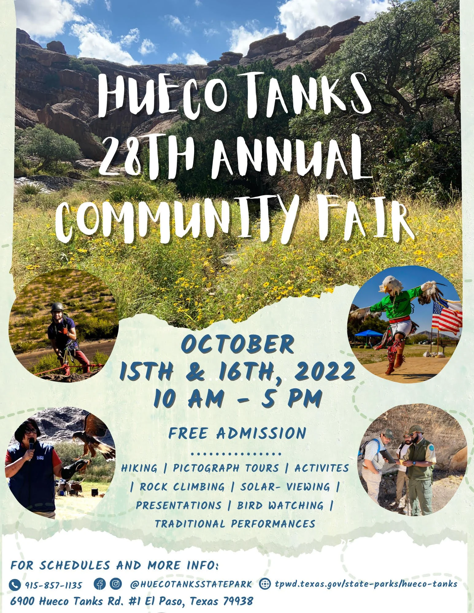Hueco Tanks 28th Annual Community Fair - Sunday Sunday, October 16, 2022 10:00β―AM 5:00β―PM Google Calendar ICS