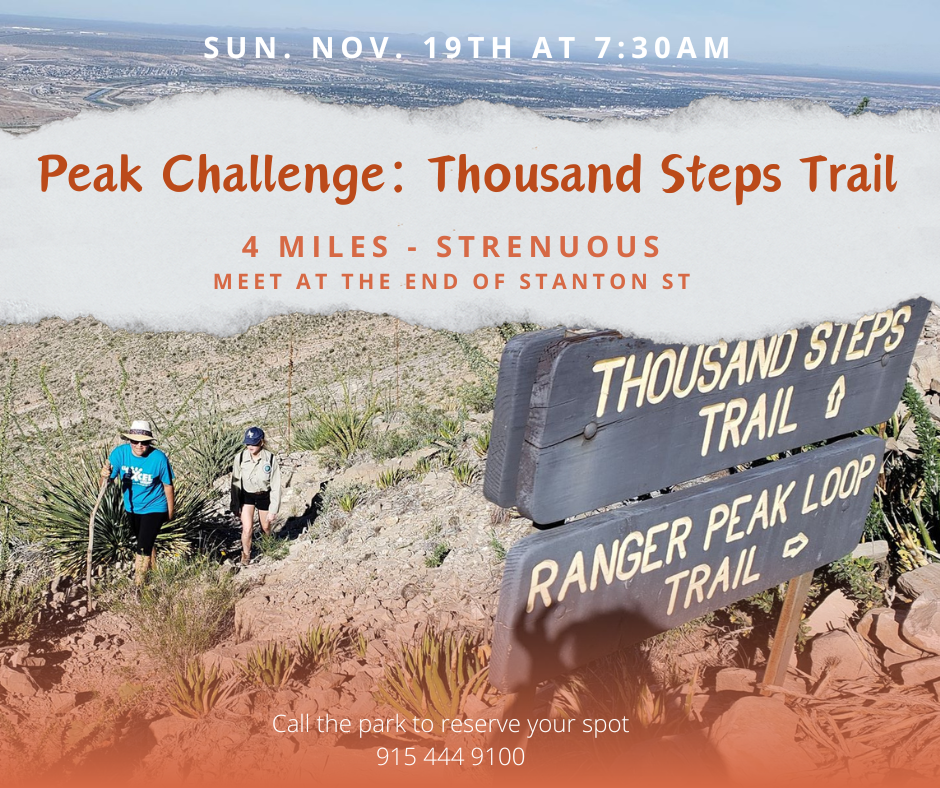 The Franklin Mountains is a rugged playground for those looking to challenge themselves. This month we will be taking this challenge in the southern section of the park at the Thousand Steps trail.